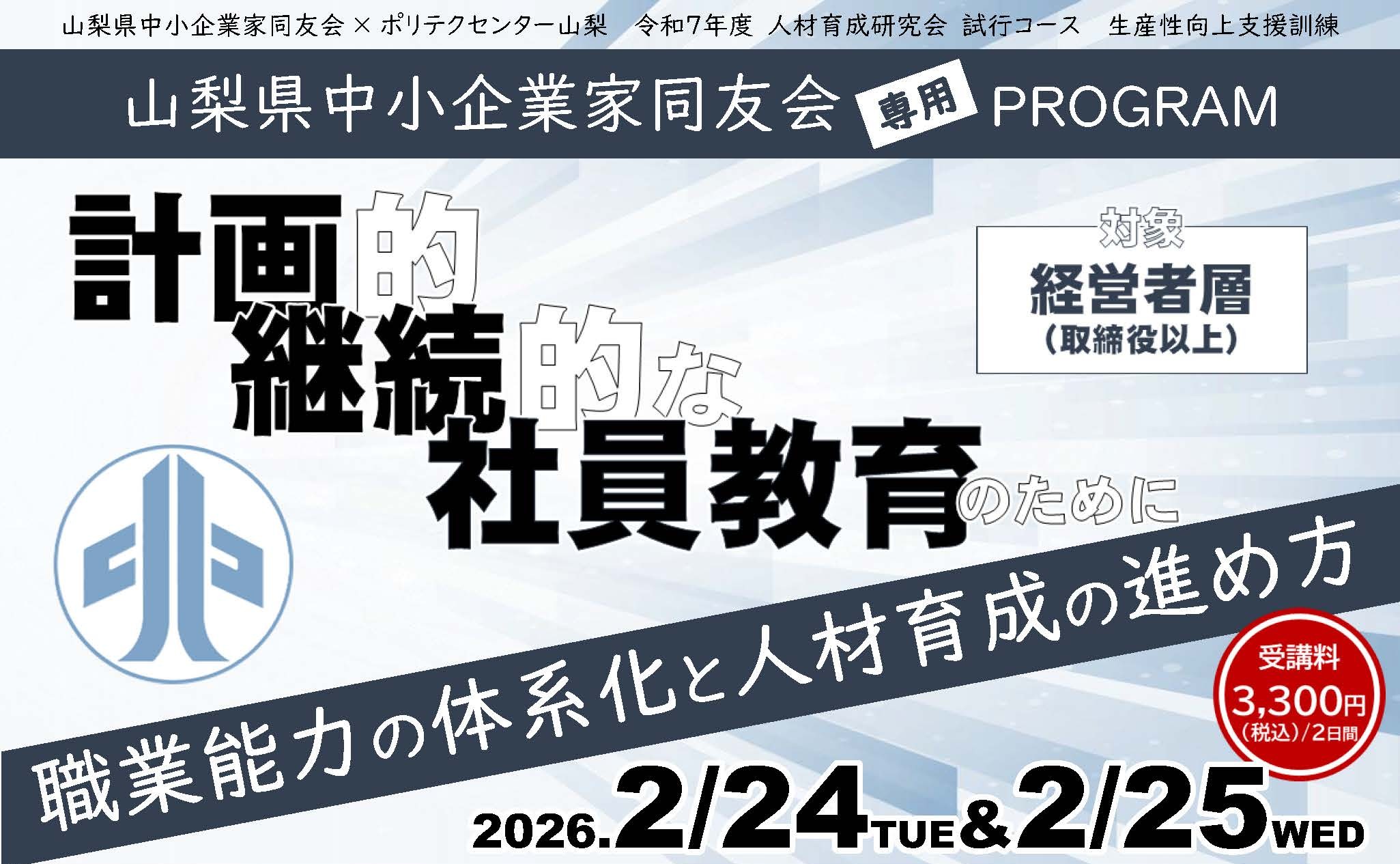 お知らせ山梨県中小企業家同友会× ポリテクセンター山梨 連携講座